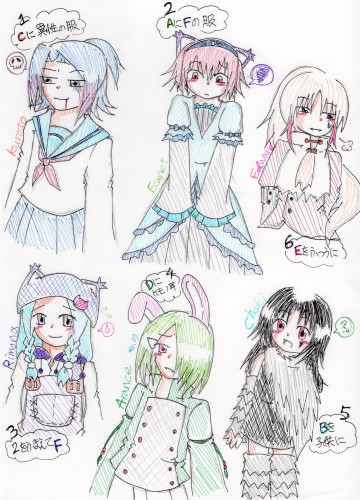 1. Cのキャラに異性の服を着せて描いて下さい。